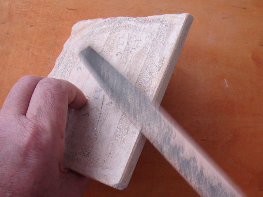 Con una lima fina trabajamos los bordes del azulejo cuidadosamente, para acercarnos en lo posible a un cuadrado perfecto.