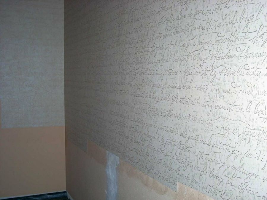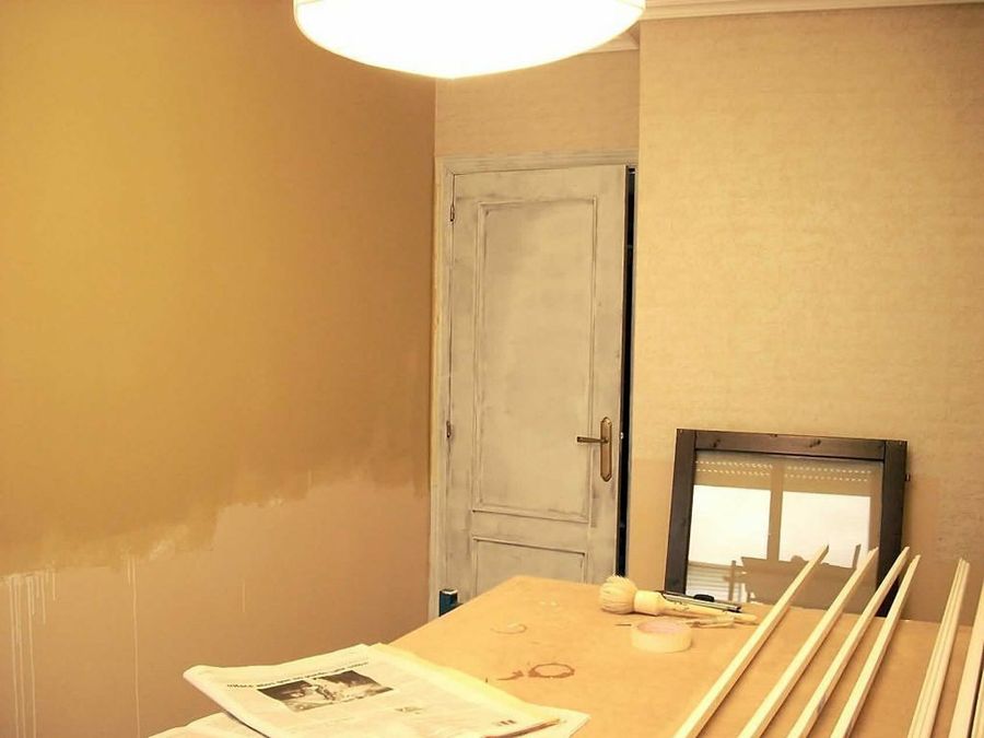 Una de las paredes va pintada sobre el zócalo, las demás irán empapeladas.