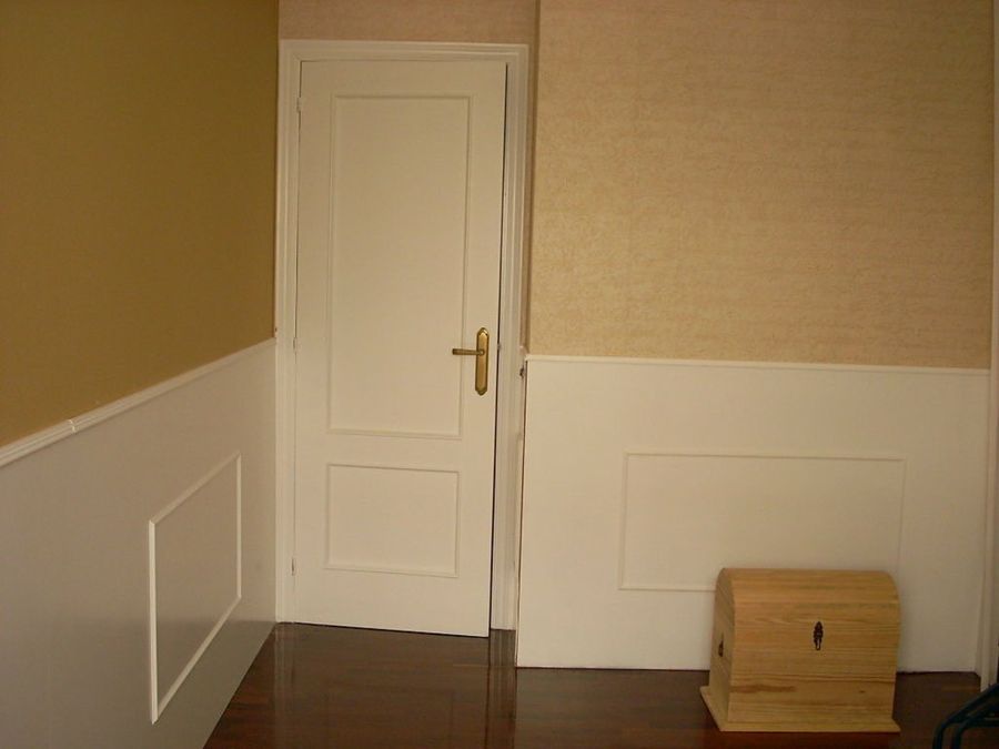 La puerta ha sido también perfectamente lacada. El esmalte empleado por nuestros amigos es laca blanca Unilack, que se encuentra en todo tipo de almacenes de bricolaje y hogar. Respectivamente utilizaron rodillo y paletina para los tableros y los listones, tanto en la puerta como en el friso.