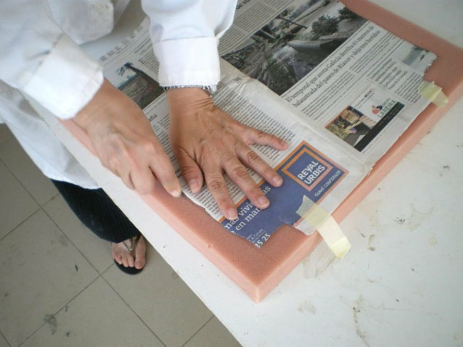 Seguidamente, Anavazvaz recomienda hacer un patrón con papel de la zona a tapizar, para facilitar después el corte de la gomaespuma.