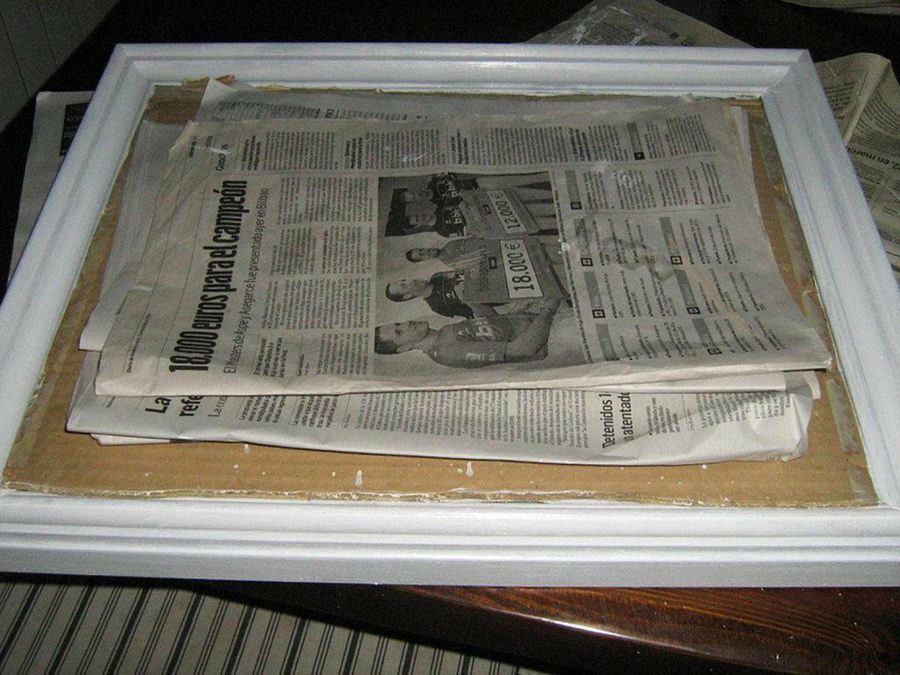 Los dos elementos principales en el montaje: un tablero DM de 120 x 60 cm, que cuesta unos 9 euros, y una moldura de madera maciza de 2,5 metros, que CristinaM adquirió por 17 euros. El bote de pintura satinada de 750 ml ha costado 8,65 euros.