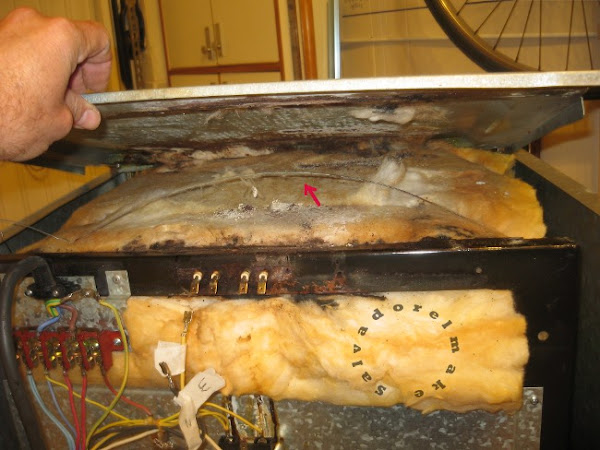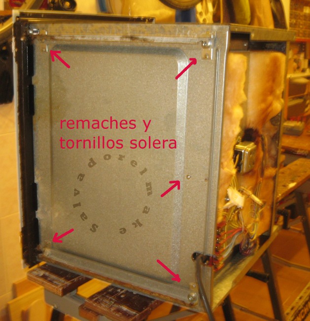 Una vez liberada la tapa de sus remaches y tornillos hay que sacarla con cuidado de no estropear el material aislante (también llamado pica-pica) que hay en su interior. Este está sujeto con alambre que se suelta o corta pensando que luego hay que montarlo otra vez.