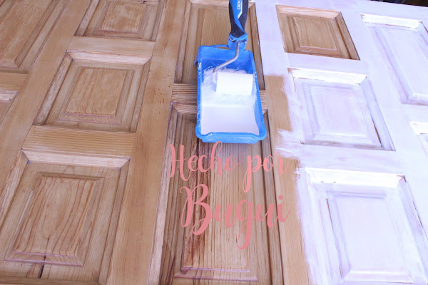 Lo primero que hice fue quitar todo el barniz que tenía la puerta, para dejar la madera desnuda.
