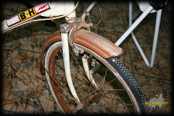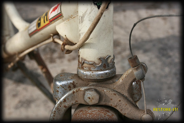 Una casi perfecta y uniforme capa de óxido cubría todas las partes cromadas de esta bici .Otros hubieran preferido despiezarla, por ejemplo para vender el precioso Rinder Monobloc que luce, nosotros seguimos fieles a nuestra filosofía y decidimos darle la segunda oportunidad que bien se merece.