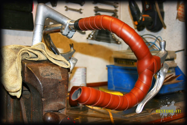 En la próxima restauración que cambiemos la cinta de un manillar, prometemos hacer un breve tutorial de cómo encintar de una forma sencilla y bonita. Por ahora os dejamos con esta foto del resultado final a falta de los tapones: