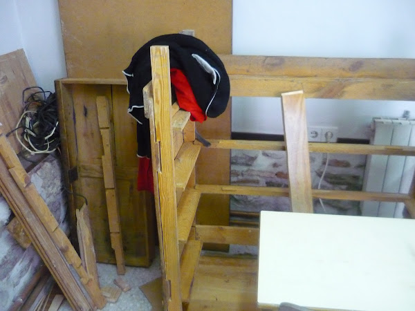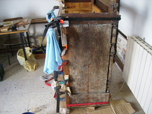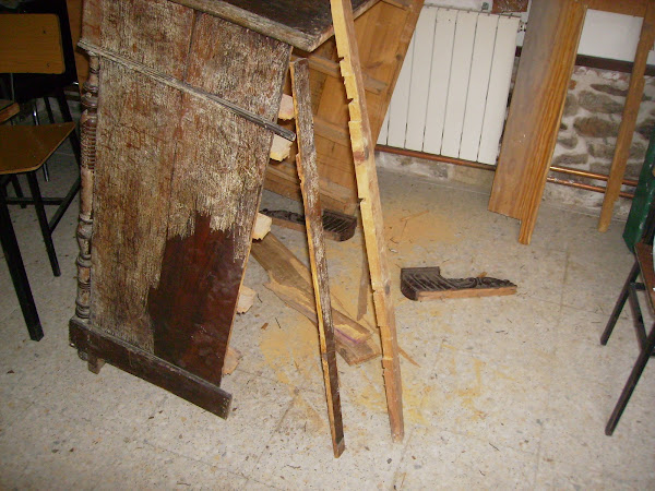 Al ir desmostando las tablas traseras, la madera se hace polvo.