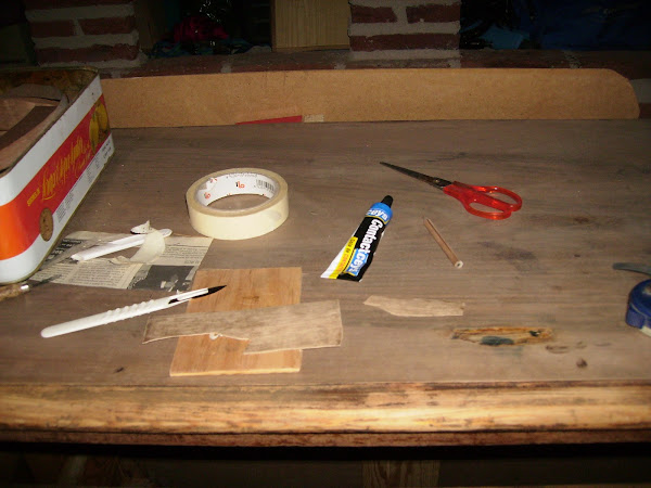 La cinta roja que se ve es un gato de fleje. Une fuertemente todo mientras seca la cola de carpintero.