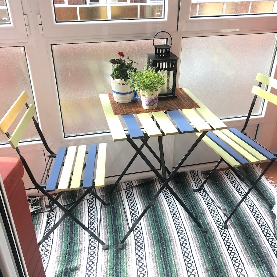 Después de tener unos años este conjunto de mesa y sillas de jardín de IKEA en nuestra terraza, prácticamente sin usar, al volver a vivir en nuestra casa REdescubrimos que la terraza era uno de los mejores rincones de la casa y prácticamente no la utilizábamos.