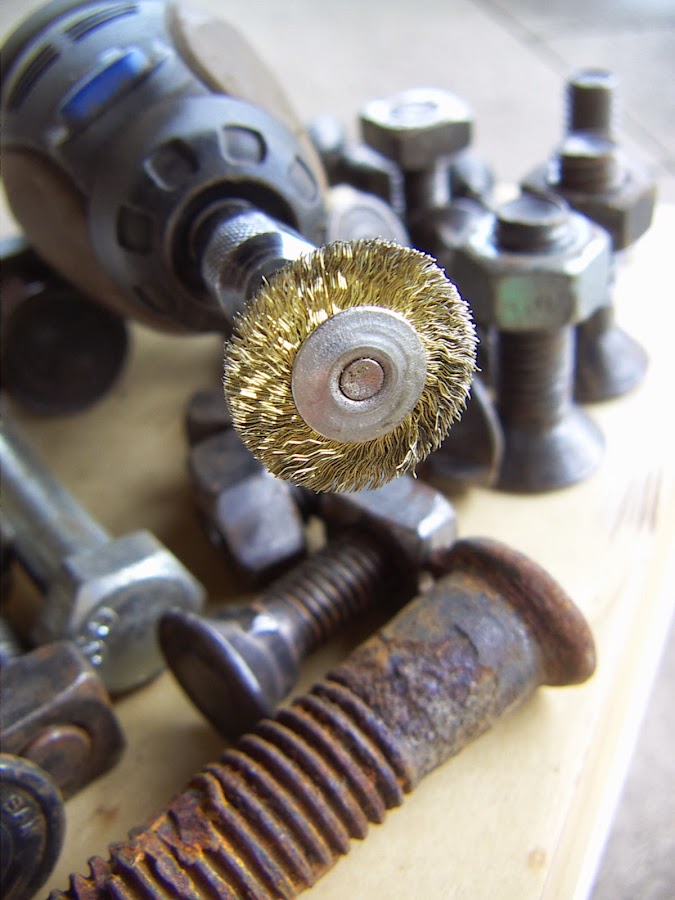 Para lo primero podemos utilizar un disco de alambre de latón acoplado a un taladro o a una amoladora.
