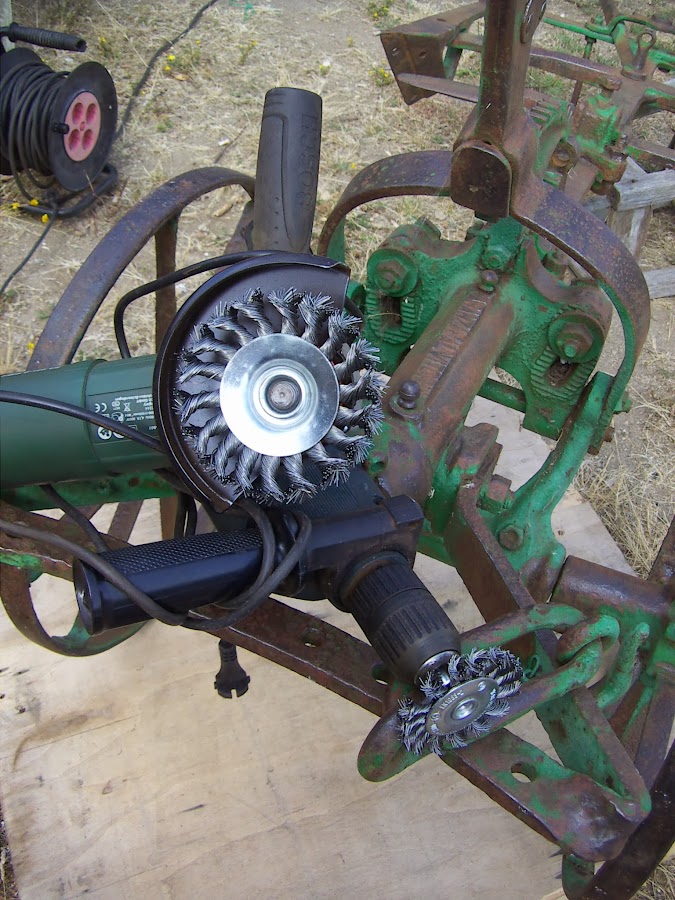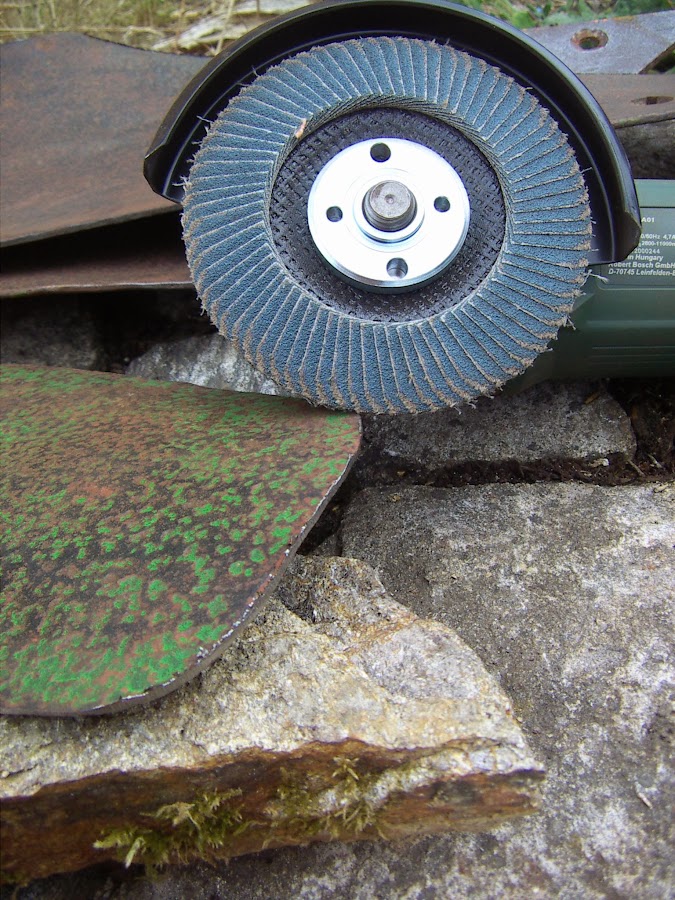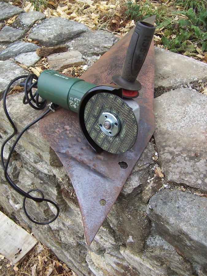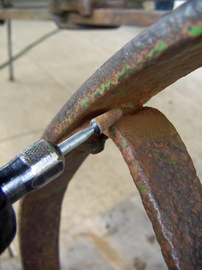 Todos los cantos cortantes los voy a redondear un poco porque este arado ya no trabajará más tierras sino que pasará a ser un objeto decorativo y no quiero que nadie se corte por accidente...