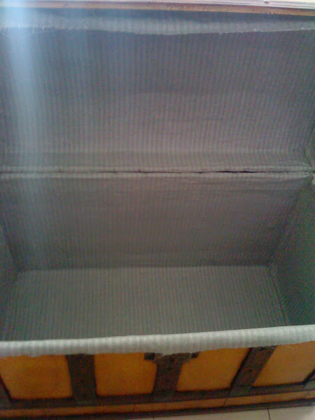Tras rematarlo todo bien con grapas, dimos el trabajo por finalizado, y así es como quedó el baúl.