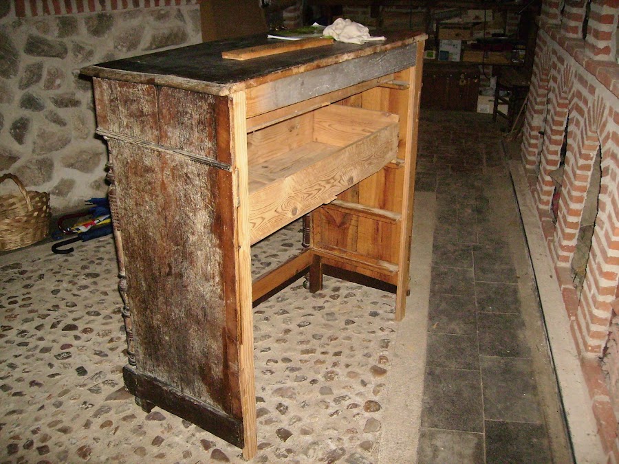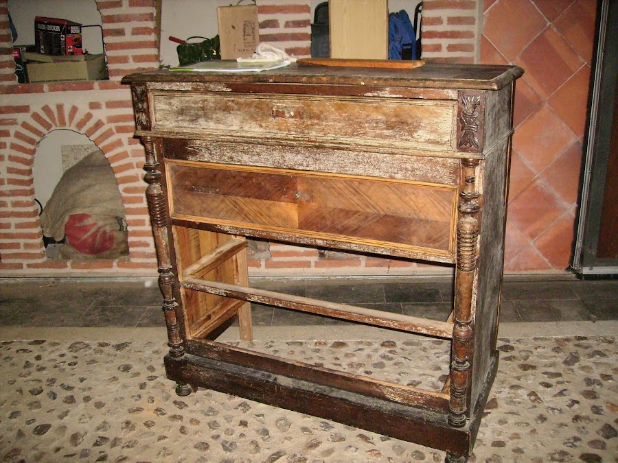 Pero la cómoda estaba muy deteriorada, comienzo quitando todos los cajones, que ya explicaré mas adelante lo que tengo que hacer.