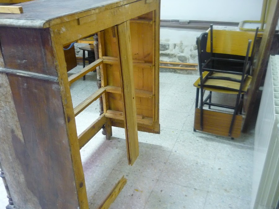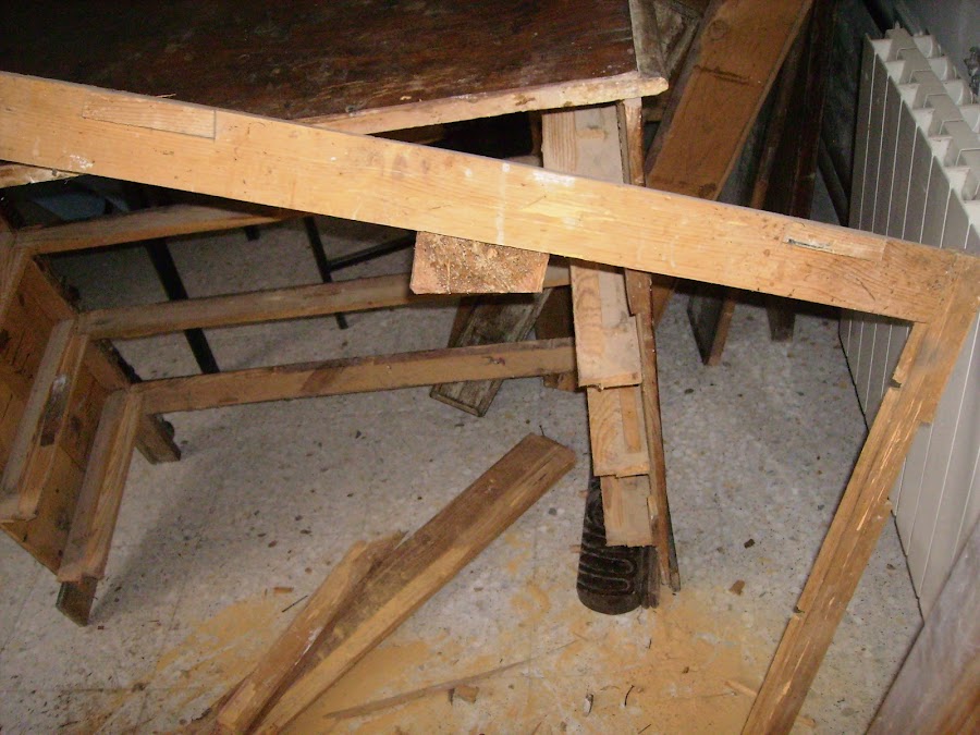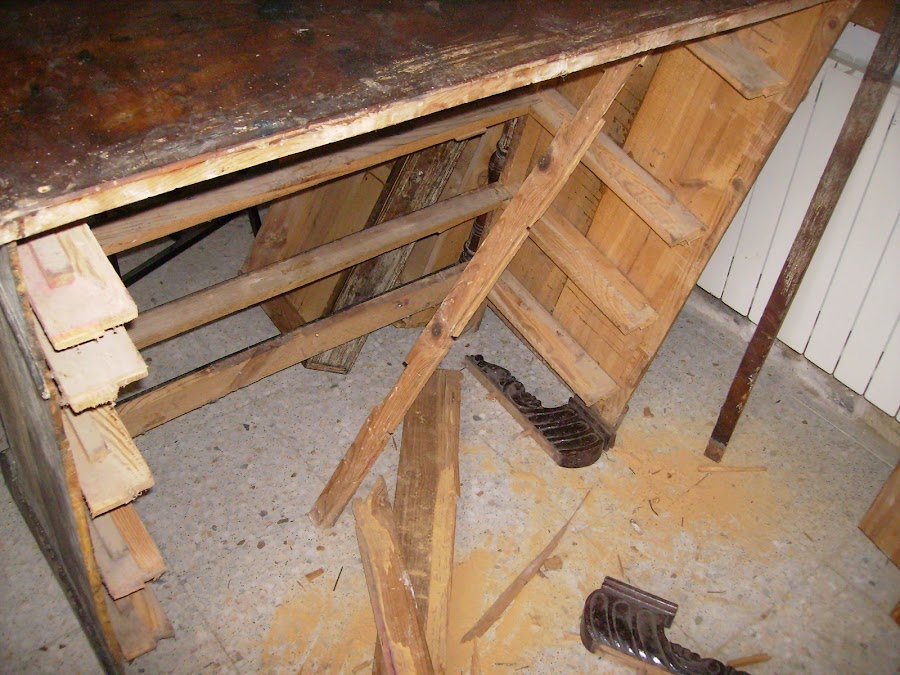 Al ir desmostando las tablas traseras, la madera se hace polvo.