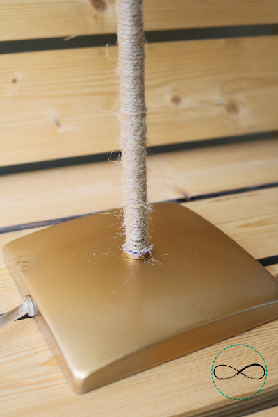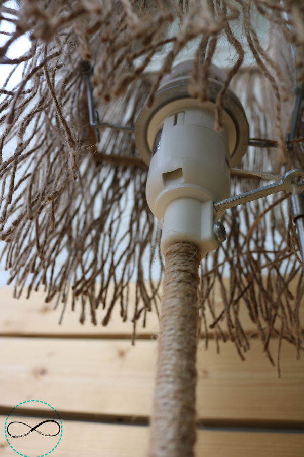 El tubo por donde pasa el cable que era metálico y se estaba poniendo feo, tirando a oxidado, decidí forrarlo con la misma cuerda de rafia.