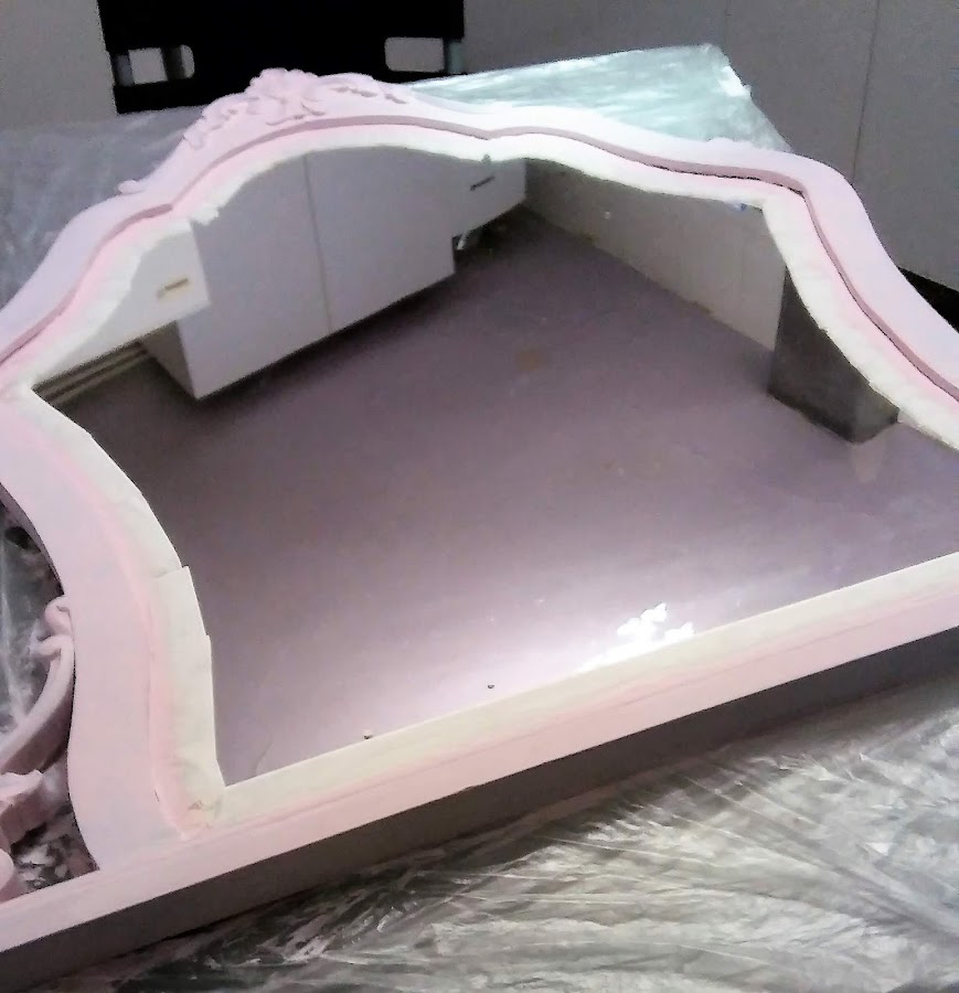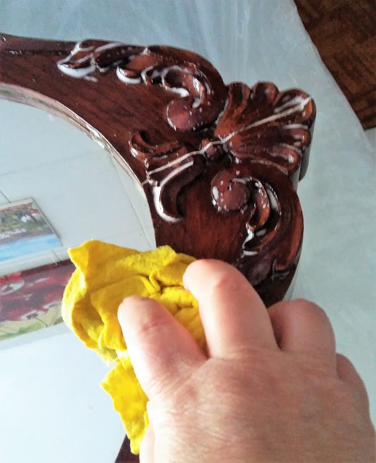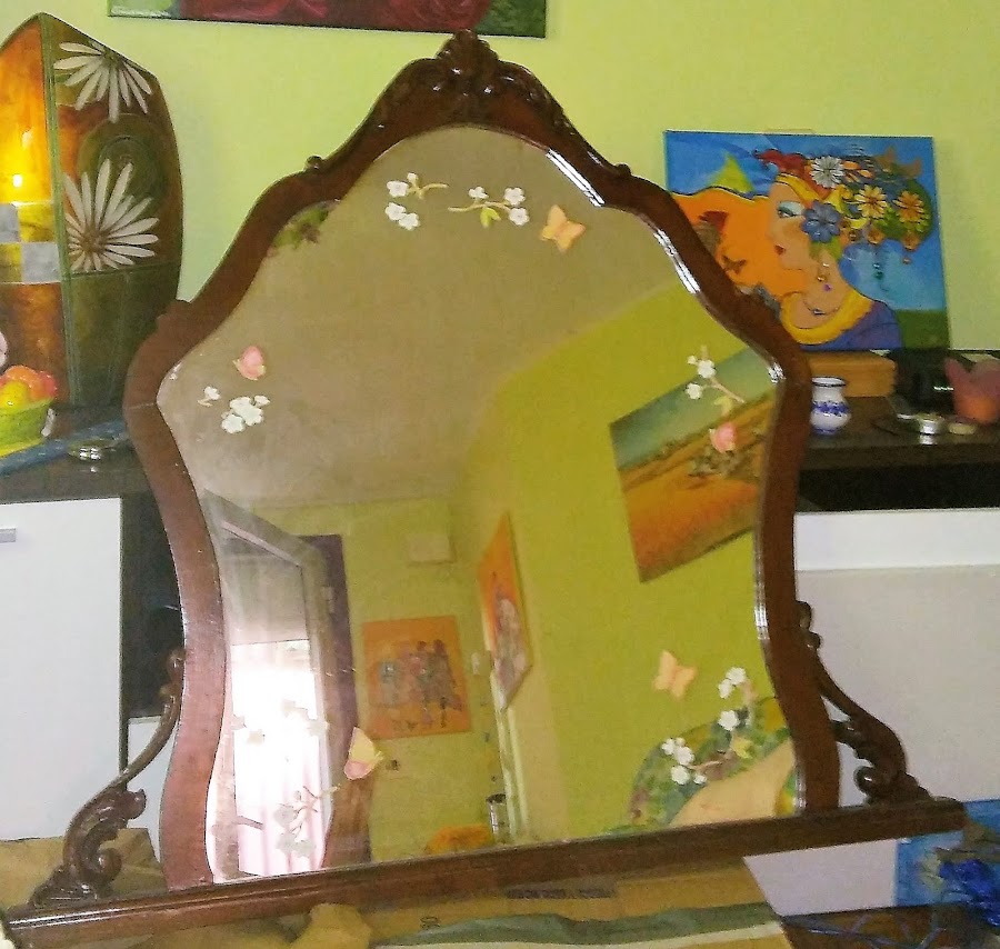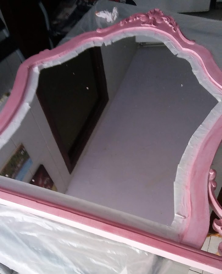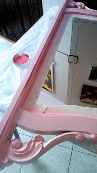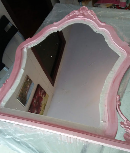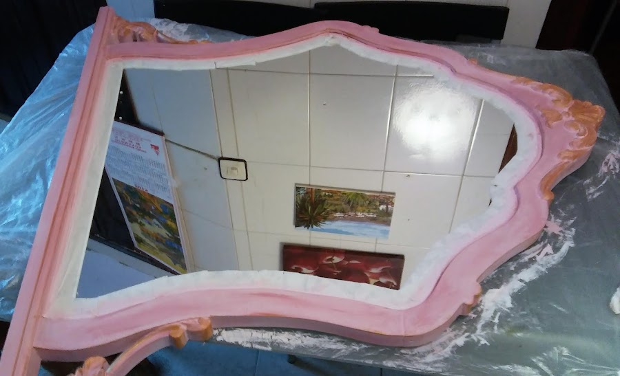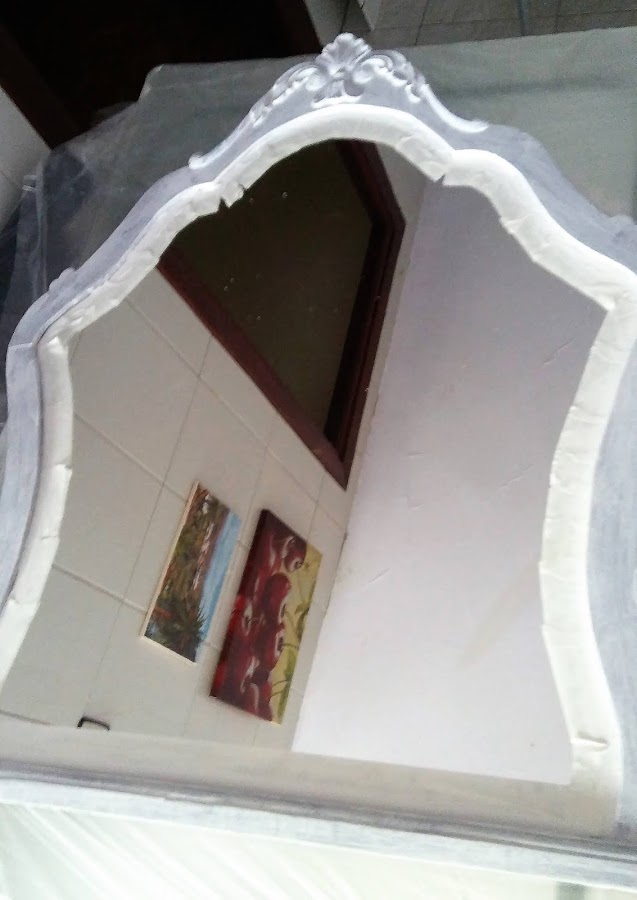 Llevaba tiempo deseando restaurar el espejo de la cómoda de mi madre. Debe tener probablemente unos 50 años mínimo. Para mí es muy emocional tener esta pieza en la que ella se habrá contemplado tantas veces, se habrá pintado los labios, y a la que habrá limpiado muchísimas veces más.