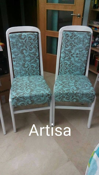 Y lo primero que he hecho ha sido restaurar dos sillas que tenía ya viejecillas, porque en sí estaban genial, no ha hecho falta ni encolarlas, pero estaban ya un poco feillas.