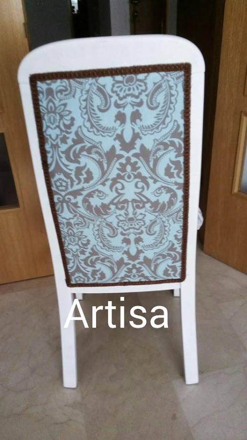 Como veis el tapizado feísimo y lacadas en color cerezo, y como en abril me compré dos sillas nuevas, de esas tipo sillón con brazos y eran blancas, porque ya me he cansado de comprar los muebles de colorines, pues decidí restaurar estas dos sillas que tenía.