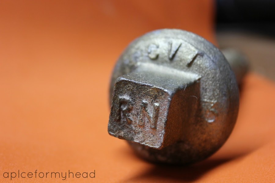 Paseando este verano por el pueblo hicimos ruta cerca de las vías del tren y por allí estaba el tornillito, solitario en mitad de las piedras y como no había cargado ya bastantes piedras, palitos, florcitas, moras y almendras también lo metí en la bolsa!