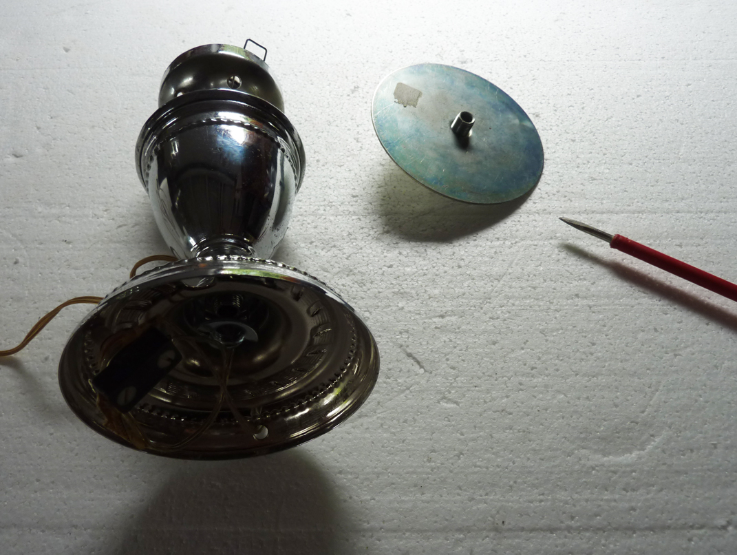 Luego volvimos a montar todas las piezas de la lámpara y le colocamos la tulipa.