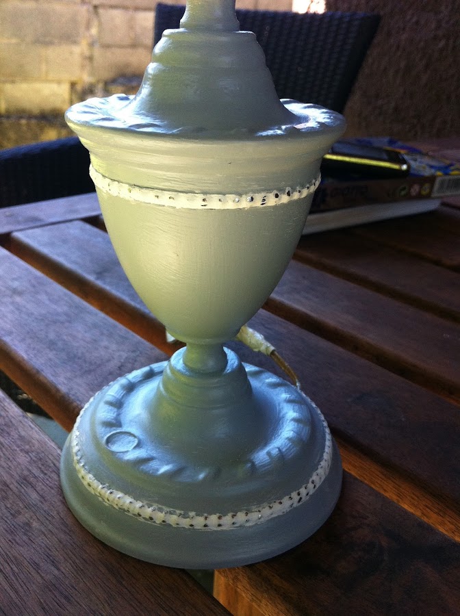 El resto de la lámpara lo pintamos con esmalte gris metalizado.