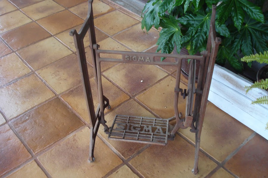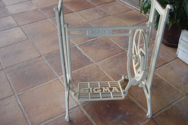 Hoy os enseño unas patas antiguas de una máquina de coser. Son de mi madre y ya llevan tiempo en mi garaje en lista de espera. A mi me gustan así con esa pintura y con restos de óxido... Pero como son de mi madre, tengo que darle un lavado de cara. A ella con este aspecto no le gustan. Me las quería dar pero no acepte, prefiero que las tenga ella.