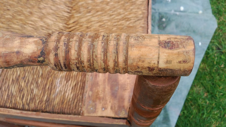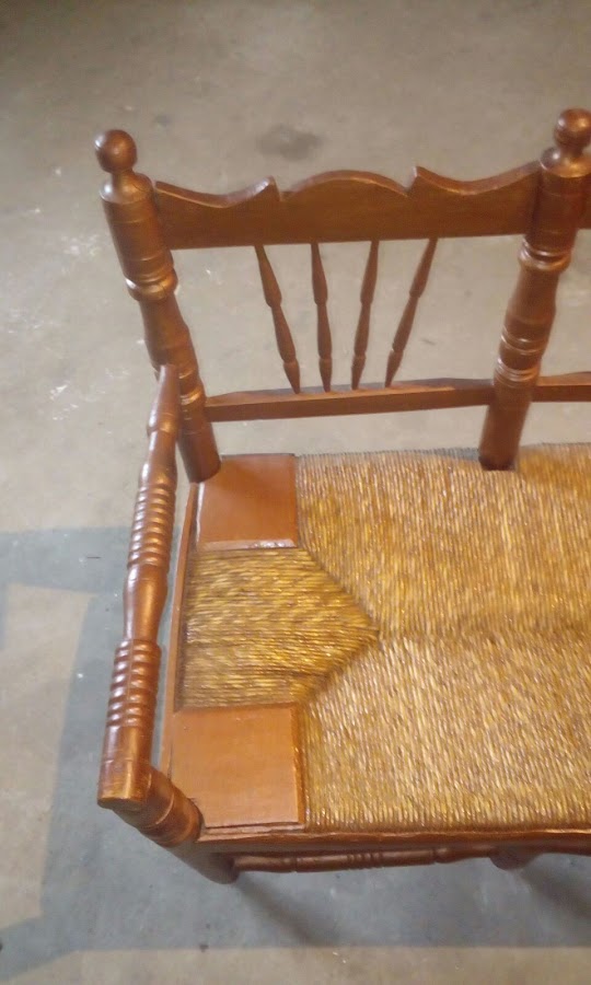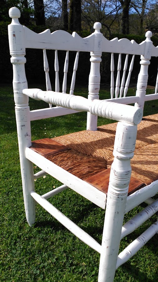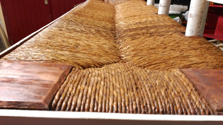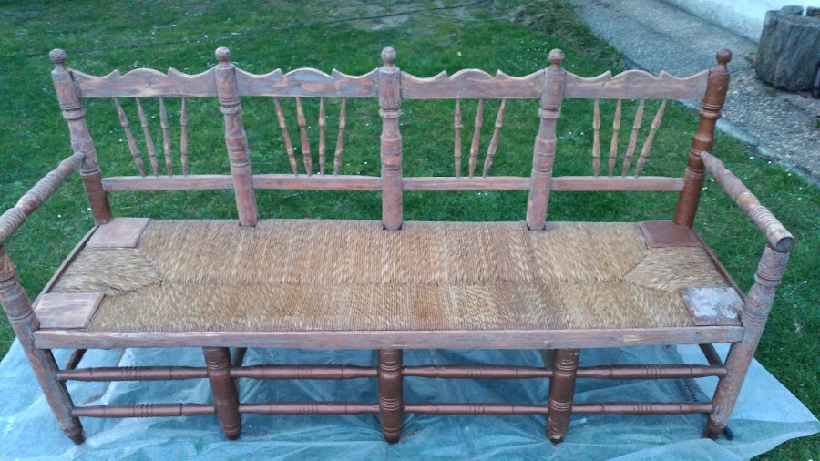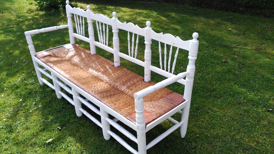 Se trata de un banco que en su día fueron 4 sillas. Lo debió realizar el padre del dueño del banco. Todo un artista, tanto las uniones como la enea se veían muy bien hechos aunque estaban en malas condiciones de mantenimiento...