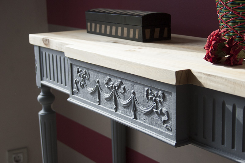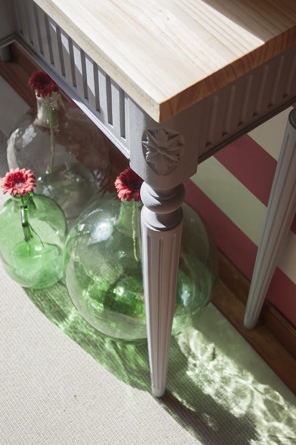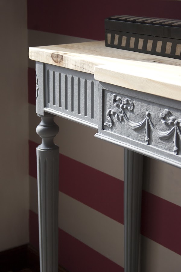 Pintura a la tiza. Nosotros usamos la pintura que ya habíamos usado en el nuevo escritorio de la princesa ¿Os acordáis? Mezclamos blanco y negro para conseguir un gris, que encaja en cualquier ambiente.