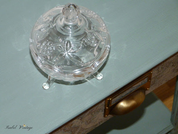Esta mesita de noche antigua, cómo no, fue rescatada de la calle. Me encantó, tan pequeñita y tan mona...
