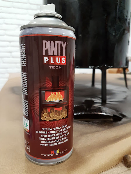 Para la estufa, hemos utilizado una pintura anticalórica negra de la marca Novasol Spray. Esta pintura es especial para pintar piezas que van a estar en contacto con mucha temperatura, así que es perfecta para pintar la estufa. La verdad es que ha sido super fácil de pintar, la pintura sale muy bien, y cubre de maravilla.
