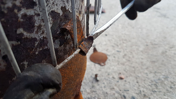 Poco a poco vamos soltando las palanquitas y después con la ayuda de una radial y un disco de papel, vamos a lijar toda la superficie oxidada hasta que lleguemos a la plancha sana.
