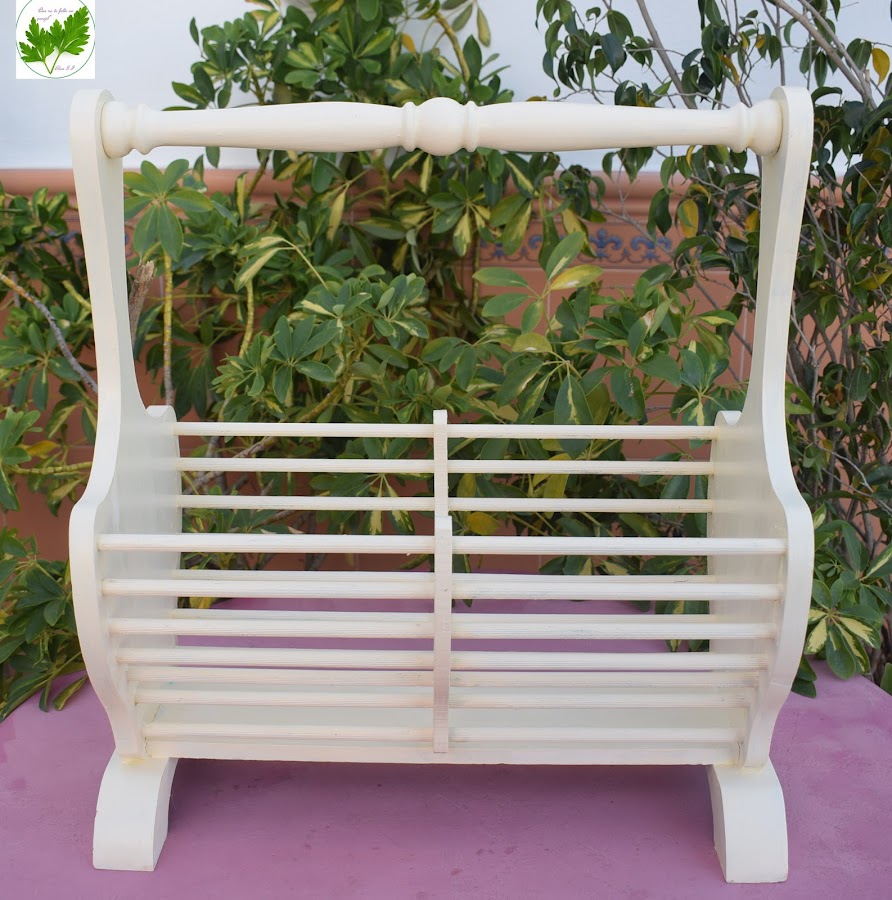 En primer lugar pinté el revistero dando una mano de pintura. La pintura a la tiza no necesita imprimación ni lijado previo. Sólo debe estar bien limpia y seca. Dí dos manos, dejando secar 24 horas entre una mano y otra.