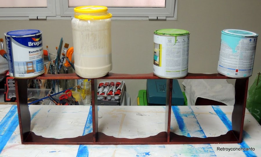 Mirad qué bien queda nuestra estantería, ya pintada, sobre ella...