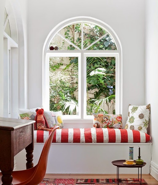 Así que mientras escribo ésto me imagino en un día frío, sentada (o tumbada si puedo elegir) en alguno de éstos rincones que os enseño a continuación, tapada de la cabeza a los pies con una manta gordota y un té calentito al lado, mientras me leo un buen libro e imagino mirando hacia el exterior...