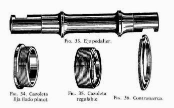 Como podéis ver, consta de 4 partes bien diferenciadas: el propio eje, la cazoleta fija, la cazoleta regulable y la contratuerca. Vamos a trabajar sobre la contratuerca y la cazoleta regulable: