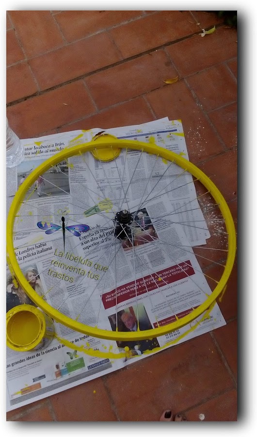 Y a la rueda le di unas manitas de pintura, en amarillo, verde mint y azul. Verdad que queda mucho mas alegre?