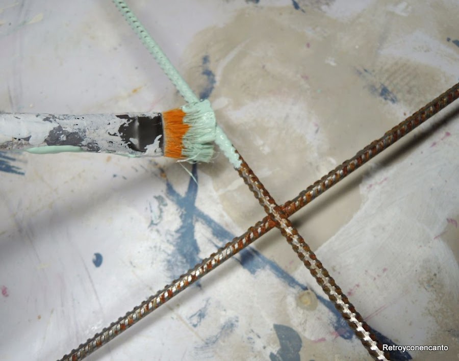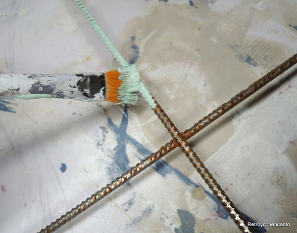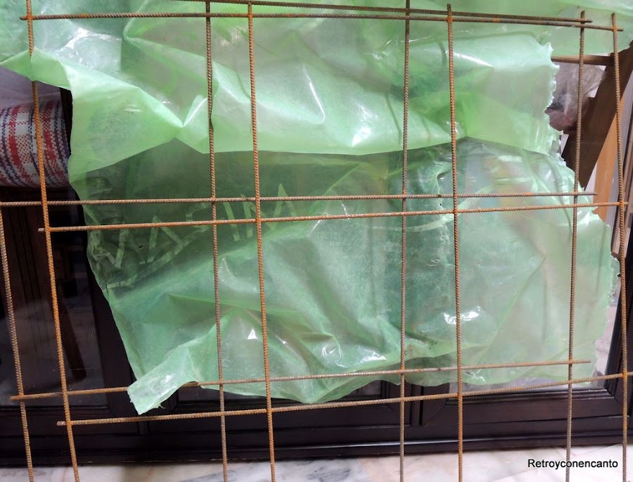Alguna os preguntaréis que para qué sirve un mallazo, nosotras también... Sólo sabemos que es una malla de acero compuesta por barritas soldadas entre sí formando cuadrículas, y que se emplea en la construcción. Dicho lo cual, procedimos a limpiarla con lana de acero y vinagre. Alucinante cómo sale el óxido con esta mezcla...