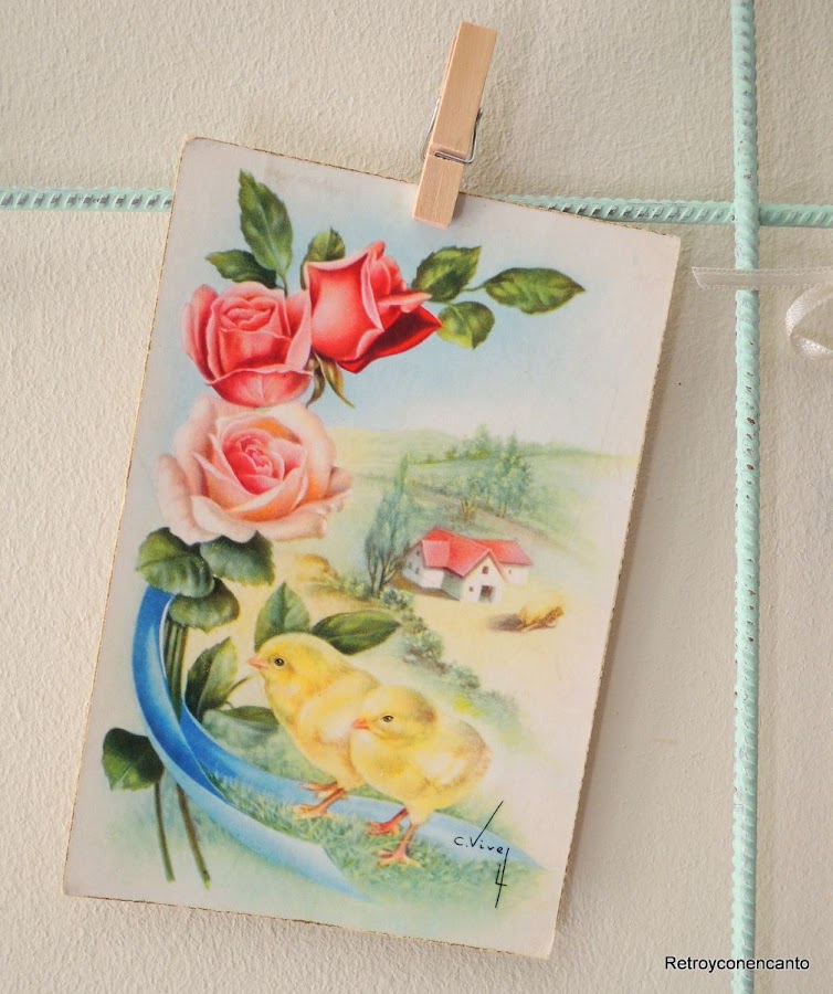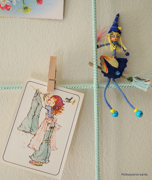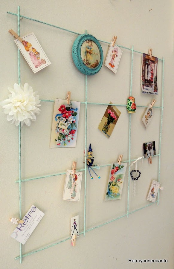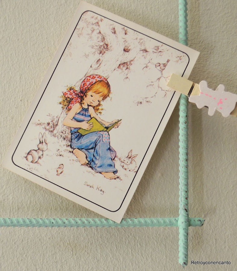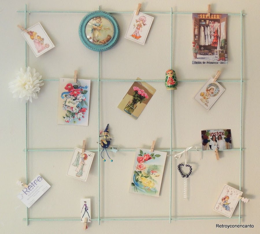 Pero en nuestro mallazo cabían más cosas, detalles vintage y románticos que, sujetos con pequeñas pinzas de madera, daban colorido y belleza al conjunto.