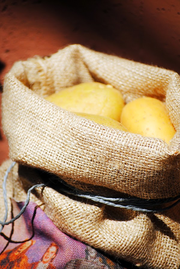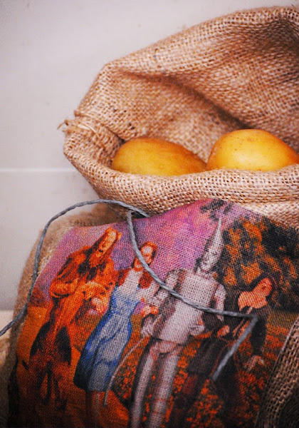 Posiblemente soy la única persona del mundo que tiene un problema para guardar las patatas. Cuando compras una cantidad grande: ¿dónde las metes? ¿en un mueble? ¿una caja?... Evidentemente, quien tiene despensa, lo tiene fácil. Así que hoy he decidido hacer un saco para las patatas, que va acompañado de un pequeño tutorial sobre la técnica del transfer en tela que he usado.