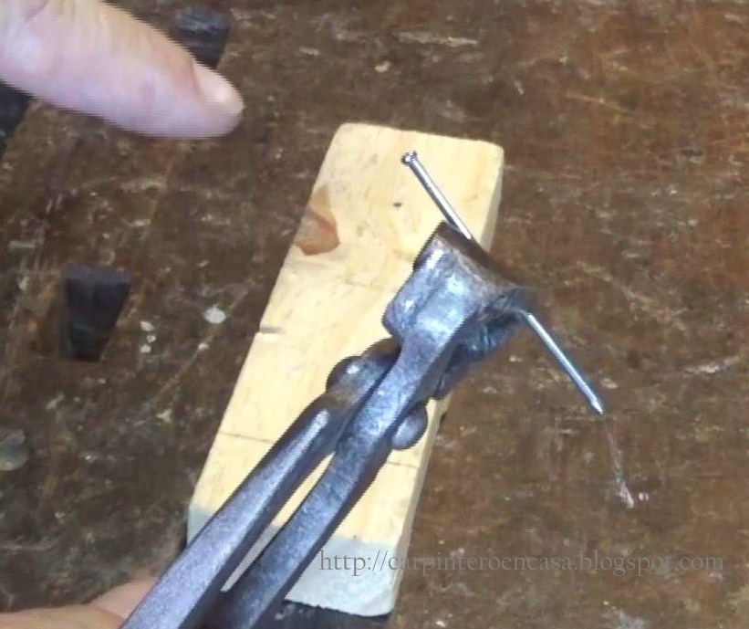 Tomamos el clavo por la cabeza, colocamos la tenaza en el ángulo más agudo que podamos, en el cuerpo de éste y en la medida que necesitemos, y cortamos con fuerza apretando con la herramienta.