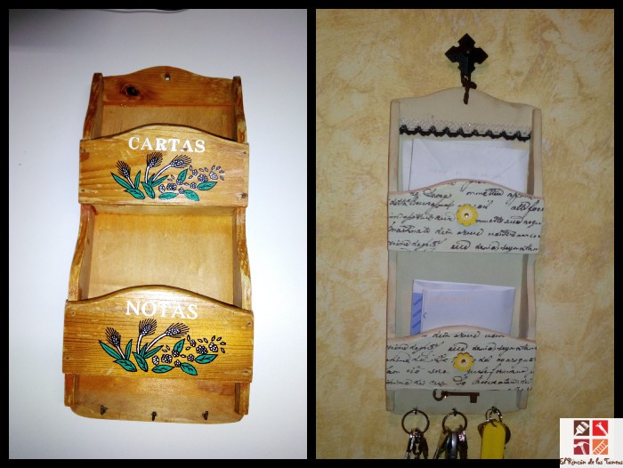 El caso es que yo tenía uno que reciclé para mi casa y mi amiga al verlo me dijo que necesitaba uno igual para la entrada de su casa, para colgar las llaves y dejar cartas de médicos etc, pero el problema era que este viejo portatodo ...era muy viejo, son de esas cosas que tienes por casa desde hace mucho tiempo y que ya no se encuentran en las tiendas aunque quieras.