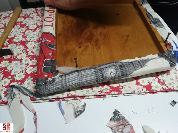 Y grapar y grapar dejando la tela tirante y sin arrugas.