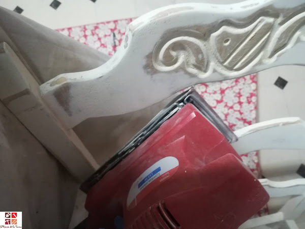 Una vez secas, y para hacer un decapado y resaltar las zonas con esos relieves tan chulos que tenían, pasé la maquina lijadora de nuevo