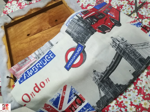 Una vez colocada la guata, tocó el turno a la tela, que cusualmente y por gusto de Jose la encontré en un mercadillo. Además la misma que él me enseñó, así es que felices los dos.