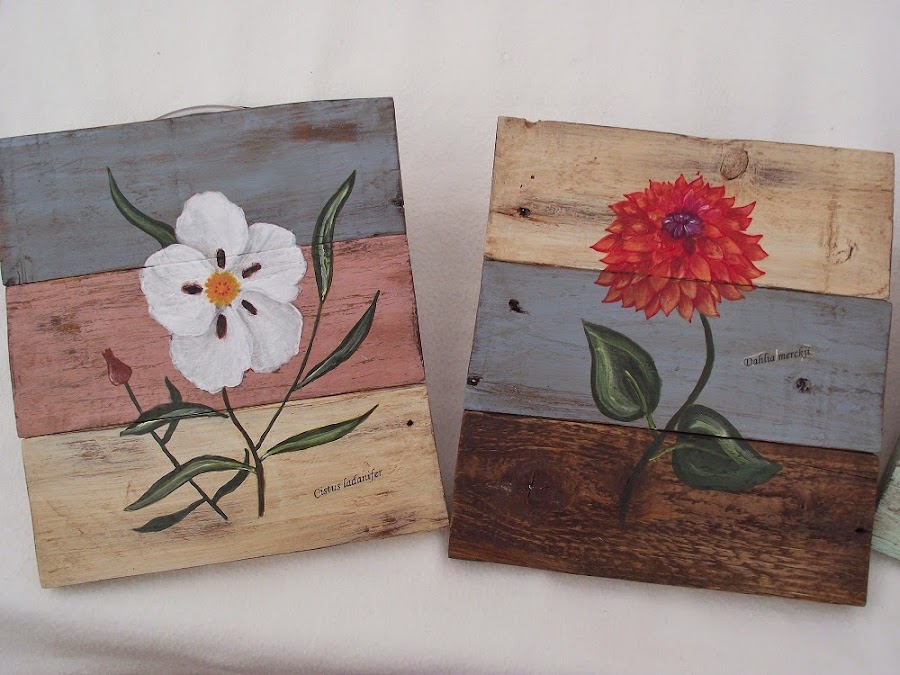 Las plantas son pintadas, a partir de modelos elegidos de una guía botánica, y seleccionando plantas autóctonas de la región.