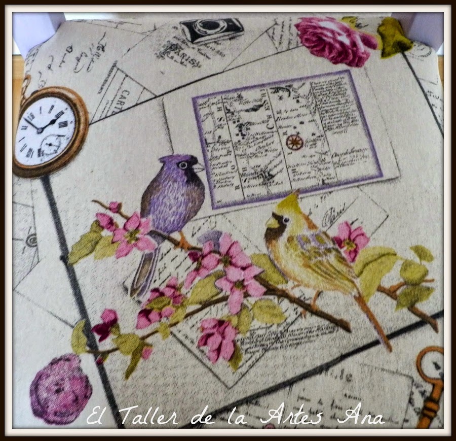 La tela es preciosa, en cuanto la vi supe que iba a ser fácil usarla en alguno de mis proyectos. Tiene unos motivos vintage preciosos y por supuesto no podían faltar mis pajarillos.