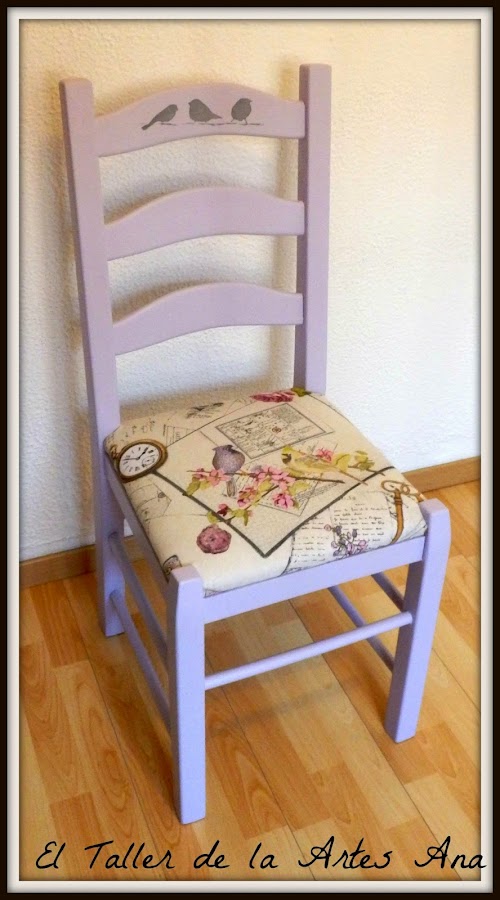 Tras varias manos de imprimación había que decidir el color. Me decanté por un suave color malva ya que quería que fuera una silla romántica. Os presento la silla Birdie (pajarillo).