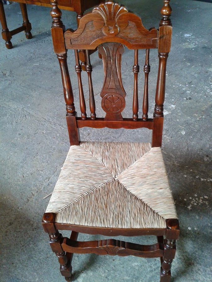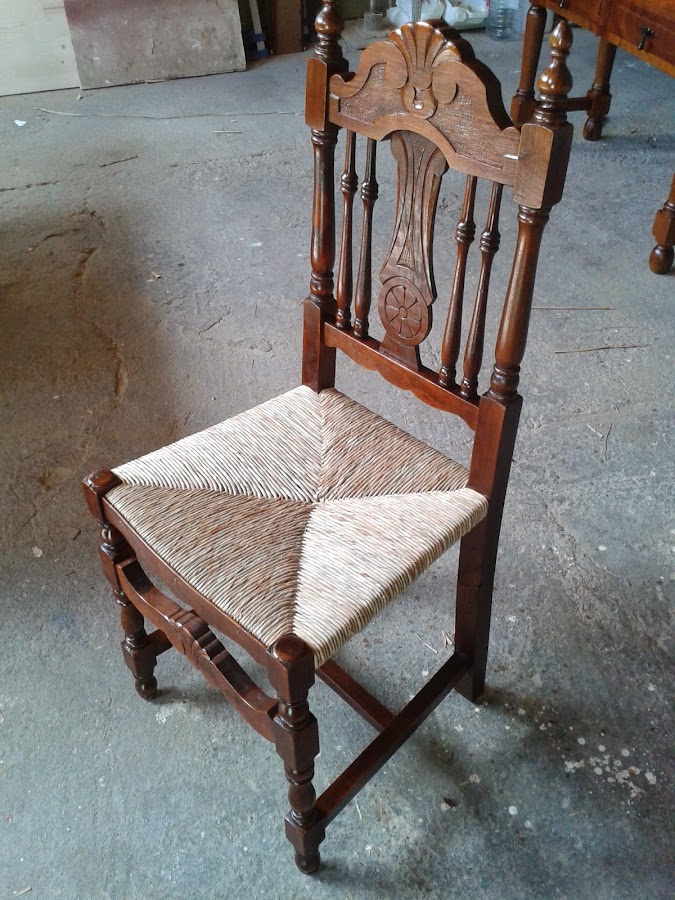 Uno de nuestros últimos encuentros ha sido esta silla de madera. La verdad es que, a simple vista, no llama demasiado la atención... pero le vimos "ese algo" que nos gusta en TCT y quisimos darle una segunda oportunidad. El color de la silla era feo (sin lugar a dudas) y el asiento tenía el mismo cuestionable color y ¡¡además!! en polipiel (....¡sublime!...). El asiento fue ...