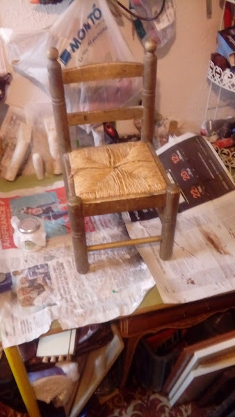 Asi es como estaba y como siempre hay que valorar el estado de conservación del objeto a trabajar. Está sin carcoma pero al hacer la pruebas de limpieza no se quitaba la suciedad. Con lo cual decidí recuperar a dos colores. También el tapiado está en mal estado. Como se ve es de Enea, también recuperé le puse cinchas, goma espuma y tela.