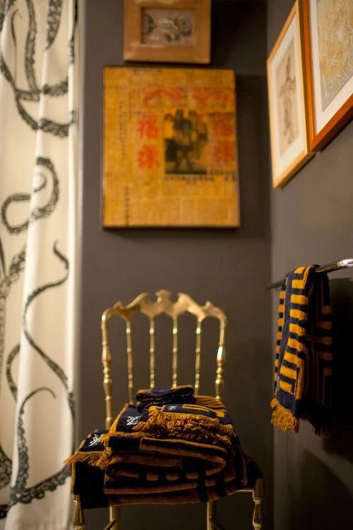 Creo que puede quedar muy bonita en cualquier rincón del hogar, incluso en sitios donde en un principio no pensábamos colocar una silla, como en un baño. ¿No os parece que quedaría ideal en un baño con aire vintage como toallero? Tanto en el asiento dobladas como colgadas en el respaldo. O como silla de tocador. Os muestro algunas propuestas.