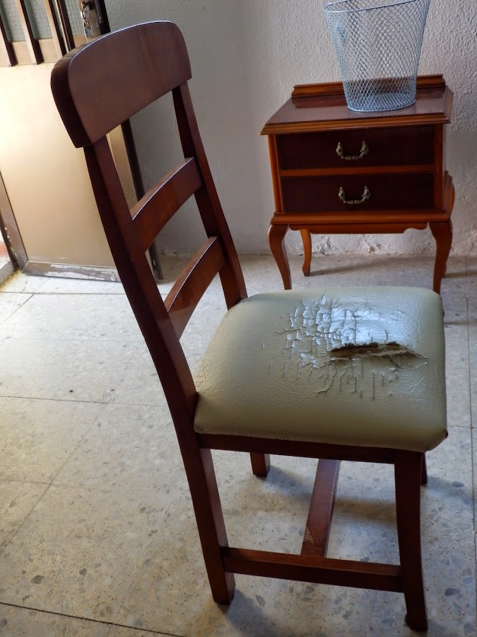 El tapizado estaba destrozado pero no importa porque está claro que lo iba a retirar.